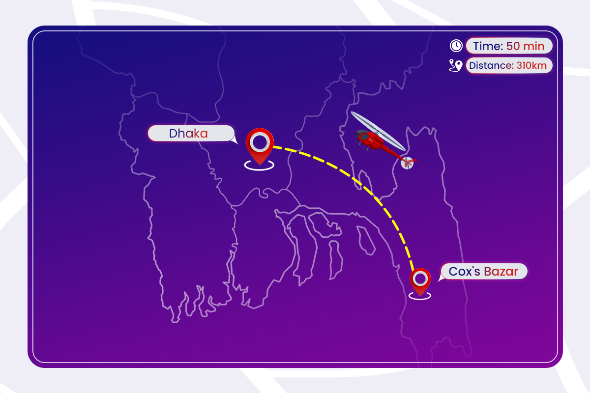 Cox's Bazar to Dhaka fast and reliable air ambulance support 24/7 in case of critical and time-sensitive emergencies.